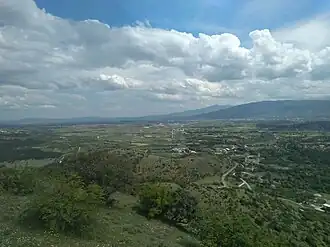 ![]() View of the Skopje Basin from the northwest, from the entrance of the Lepenec Gorge | |
