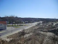 The area was originally outlying land, belonging to Skrea. The number of bathers increased as it became easier to reach the beach due to road and rail connections.[2] In 1914, the beach had tens of cabins, and by 1928 their number had increased to about 300.[3] Tuberkulosföreningen (the Tuberculosis association) had a children's camp at the beach from 1917.[1] From the 1930s, facilities such as a hotel and restaurant were built to handle the increasing number of bathers.[3] Hotel Strandbaden's first building was ready in 1937 in the same place where the current hotel is located.[4] Klitterbadet was built in 1969.[5]