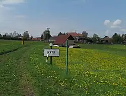 Skryje is a municipality and village in Rakovník District in the Central Bohemian Region of the Czech Republic. It has about 200 inhabitants. The historic centre of the village is well preserved and is protected as a village monument zone.