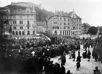 The funeral of Janez Evangelist Krek in Ljubljana in 1917 turned into a manifestation of the Party popular support.