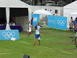 Gregor Rajh at the Junior Men's Individual archery competition at Kallang Field, Singapore
