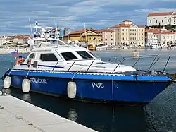 The Slovenian National Police Force is the national government agency that handles the responsibility of law enforcement of the Republic of Slovenia. It is composed of the eight police directorates in Celje, Koper, Kranj, Ljubljana, Maribor, Murska Sobota, Nova Gorica, and Novo Mesto.[2] Law enforcement in Slovenia is governed by the Slovenian Ministry of Internal Affairs. The police force maintains a number of international partnerships with foreign police forces, including training with the U.S. Federal Bureau of Investigation, and involvement in Albania and Kosovo with the Multinational Advisory Police Element.[2] The Slovenian police force was admitted to Organization for Security and Co-operation in Europe on March 24, 1992.[3]