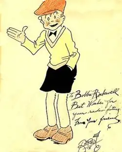 The strip featured young office boy Augustus Smith aka Smitty, his six-year-old brother Herby, his girlfriend Ginny and his dog Scraps. Other characters were Smitty's boss, Mr. Bailey, and the Indian guide, Little Moose. Berndt based the strip on his own experience as an office boy, recalling, "I learned the tricks, shenanigans and schemes of an office boy and became expert at them."[2] Berndt saw his creation as featuring "flashbacks of things you did as a young fellow."[2] As the strip progressed, the teenage Smitty aged to young adulthood (approximately 13 to 23) and eventually got married.