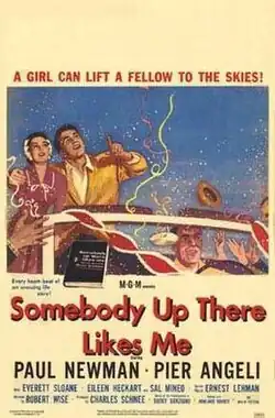 Somebody Up There Likes Me is a 1956 American drama film directed by Robert Wise and starring Paul Newman and Pier Angeli, based on the life of middleweight boxing legend Rocky Graziano.[3][4] The supporting cast features Everett Sloane, Eileen Heckart, Harold J. Stone, and Sal Mineo.