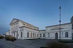 In 1860, the Russian architect A. I. Gornostayev constructed customs buildings on the opposite side of the tracks, later demolished in the Interwar period.[13] The station's establishment spurred Sosnowiec's rapid development, leading to the construction of public facilities (banks, hotels, commercial and service buildings), and residential structures, which contributed to receiving city rights from Tsar Nicholas II in 1902.[11][12]