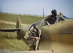 Five SAAF squadrons were designated to support the July 1943 invasion of Sicily – 1 Squadron operated combat air patrols over the beaches for the Operation Husky landings[35] while 2,[36] 4[37] and 5[38] Squadrons provided fighter bomber support during the Sicilian campaign. 30 Squadron (flying as No. 223 Squadron RAF during the campaign) provided light bomber support from Malta[39] and 60 Squadron was responsible for photo reconnaissance flights in support of all Allied forces on the island.[40] After successfully invading the island, a further three squadrons were moved to Sicily and the eight squadrons on the island were tasked with supporting the invasion of Italy: 12 and 24 Squadrons were responsible for medium bomber missions to "soften up" the enemy prior to the invasion while 40 Sqn was responsible for tactical photo-reconnaissance. 1 Squadron provided fighter cover for the 3 September 1943 landings while 2 and 4 Squadrons were responsible for bomber escort.[35]