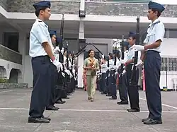 Aerospace Cadets of SCS as Carside Honor Guards during the Annual Teachers' Day Celebration. School Directress Mrs. Remedios Madrid passes through the lines.