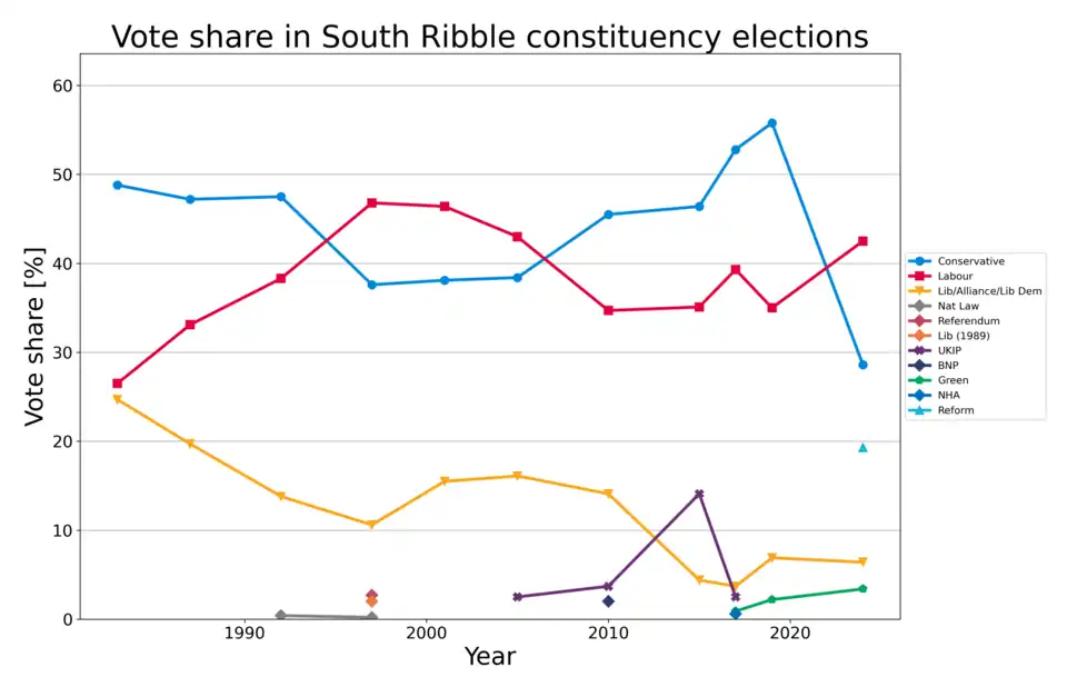 - ^ "Election for the constituency of South Ribble on 12 December 2019". UK Parliament. Retrieved 14 August 2024.