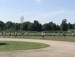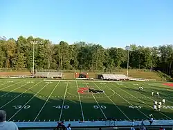 In August 2013, Southmoreland's football field, Russ Grimm field, was destroyed in a flash flood.[10] The base beneath the turf was eroded by the water, creating divots in the ground below the field which lifted the AstroTurf, causing the field to warp.[11] In addition to this, a new stream subsequently formed on the field itself. Southmoreland played the remainder of the 2013 season at nearby California University of Pennsylvania's Adamson Stadium. A new field was unveiled ahead of the 2014 season.[12]