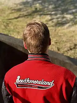 A student wearing a Southmoreland Marching Band letterman jacket.