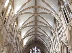 On 5 November 1711 the southwest spire was struck by lightning, and the resulting fire spread to the nave, crossing and tower destroying roofs, bells, clock and organ.[8]: 118  By 1720 repairs had been completed, now giving a flat panelled ceiling to the nave and transepts.