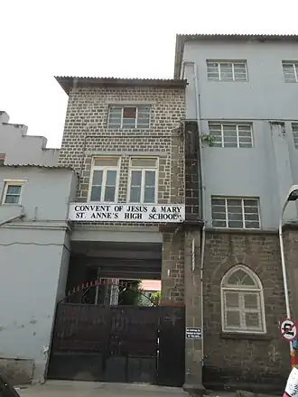 St. Anne's Convent High School is a government-accredited English medium girls' school which was founded in 1860 in Camp, Pune, Maharashtra, India.[1] The student population of 2200 attends classes between nursery grade and tenth standard. The school employs 67 teachers. The primary school (standards one to four) operates as a private entity. The secondary school (standards five to ten) is operated by the State Education Department.