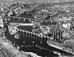 - ^ Anfinson, Scott F. (1989). "Archaeology of the Central Minneapolis Riverfront Part 1: Site Inventory - Gateway". The Minnesota Archaeologist. 48 (1–2). Archived from the original on May 18, 2016. Retrieved January 1, 2022. History of the Gateway area - west bank near the Hennepin Ave. Bridge.