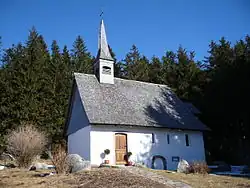 St. Martin’s Chapel (German: Martinskapelle) stands at an elevation of 1,085 metres above sea level (NHN) at the upper end of the Katzensteig valley on the territory of Furtwangen just above the source of the Danube. It is also not far from the source of the River Elz and thus the main European watershed between the Rhine and the Danube. The West Way, a major hiking trail in the Black Forest runs past the chapel as does the long-distance ski trail from Schonach to Belchen.