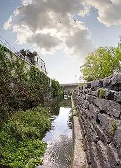 The "Mill Race," a 19th-century limestone canal to divert water from the Thames River to the mills