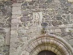 Constructed in stone with tiled roofs, the church has a cruciform plan, consisting of a nave and chancel, north and south transepts, each with a west aisle, and a tower at the crossing.[2] The nave is Norman in style, and the rest of the church is Early English, other than the top stage of the tower, which is Perpendicular.[3] The tower is in three stages, with corner and central gargoyles. There are lancet windows in the lower and middle stages, and a clock face on the east side of the middle stage. The top stage contains two-light, flat-headed, louvred bell openings, and at the summit is a battlemented parapet with elaborate corner finials.[2] The tower has diagonal buttresses, that at the southeast angle being carved with the figure of St Laurence.[3] The nave has Norman buttresses, and two Norman doorways, one on the north and the other on the south. Above the north doorway is a re-set sheila-na-gig.[2][3] The other doorways are Early English.[2] The west window and windows in the transepts contain Decorated-style tracery, the tracery in the east window being Perpendicular.[2][3]