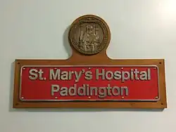St Mary's Hospital is located beside London Paddington railway station, the principal station of the Great Western Railway and its successors. In celebration of the association, a British Rail Class 43 (InterCity 125) locomotive, 43142, was named St Mary's Hospital, Paddington on 4 November 1986. The locomotive is still in service but, following changes of ownership, the name has now been removed. One of the large metal nameplates was acquired by the hospital, and is now displayed in the foyer of the Cambridge Wing.[23]