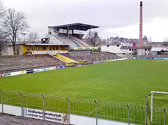 Stadion Grüne Au is a multi-use stadium in Hof, Germany. It is currently used mostly for football matches and is the home of Bayern Hof. The stadium has a capacity of 8,100 people. It opened in 1913. Attendance record is 19,100 during a Bundesliga promotion game against Rot-Weiss Essen in 1968.[1]