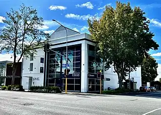 The building was sold in 2001 to Bayleys Real Estate; while the building still stands, little remains of its original appearance.[5] In late 2017 it was further modified and opened as London State Building, a three level 1,250 m2 (13,500 sq ft) commercial building, with 5 tenants and parking.[6] The gable end and moulding on the Victoria Street façade and the blind arcading on the London Street frontage remain from the 1934 building.[7]
