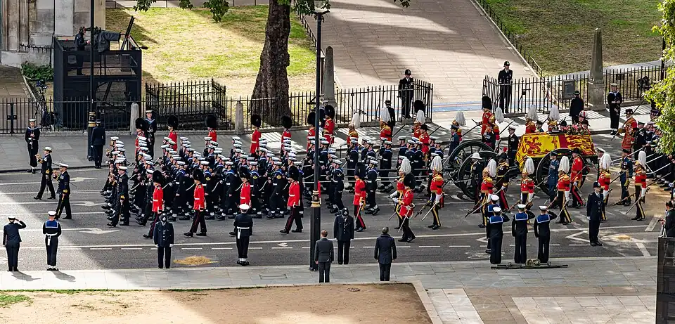 - ^ "Queen's funeral: Full guide to the gun carriage and the main procession". BBC News. 19 September 2022. Retrieved 20 September 2022.