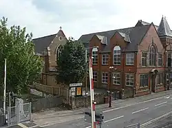 A new Sunday School with a frontage of 40 feet (12 m) on Station Road was built at a cost of £2,200 (equivalent to £290,000 in 2023)[2] was opened on the adjacent site on 23 June 1908. It comprised five large classrooms on the ground floor, and two large rooms divided on the corridor by pitch-pine partitions. The large hall on the first floor was 72 feet (22 m) by 36 feet (11 m) wide.[5] The architect was Ernest Hooley.