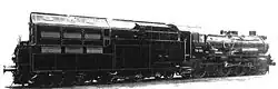 Henschel converted a normal DRG Class 38 steam locomotive to use a steam turbine in 1927.[1] The locomotive itself was little modified, the major changes being to the tender which was fitted with coupled driving wheels in a 2-4-4 layout, driven by separate forward and reverse turbines. Both turbines were driven by intermediate pressure exhaust steam from the original cylinders. A condenser in the tender provided a vacuum for the turbine exhaust, increasing thermal efficiency. As the final exhaust was at negligible pressure, the original smokebox blastpipe had to be replaced by an electric draught fan in the smokebox.