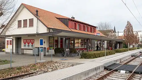 Steckborn railway station (German: Bahnhof Steckborn) is a railway station in Steckborn, in the Swiss canton of Thurgau. It is an intermediate stop on the Lake line and is served by local trains only.[4] It lies on the border between fare zones 953 and 954 of the Ostwind fare network.[3]