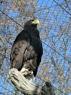 An immature in Łódź Zoo, Poland. Steller's sea eagles take several years to reach maturity, attaining the adult color pattern when four.