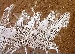 Since 1981 Stepan Veranian has made etchings, aquatints and linocuts. Veranian fully embraced linocuts, during the period spent working in the Graphics Department, National Center of Aesthetics of Armenia. The National Gallery of Armenia[2][3] and MAMY have bought his prints. The thirteen Blue Prints of 1985 were made with linocut and painting. Veranian created a key series of 21 large scale linocuts in 1989, influenced by Federico García Lorca's poems. Other prints include the Composition and Dreams (1989) series, consisting of 13 linocuts. This series of linocuts was displayed for the first time in September 1990 at MAMY, as part of a group exhibition. The Migration (tales of the Aegean Sea, sheet 02 and 03, the Pushkin State Museum of Fine Arts, Moscow), a series of 21 etchings, was created between 1989 and 1991. In May 1995, he created a number of etchings, inspired by his public and private life, for an exhibition called Moscow-Yerevan, Question of the Ark at MAMY.
