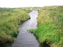 The sand dunes lay in the lands of Saltcoats Campbell, belonging to the Campbell's of Dovecothall and later to the Warner's of Ardeer House near Piperheugh on the outskirts of Stevenston.[5] The early OS maps show that a magnesia works was present in the area from 1832. A dwelling known as Summerseat in 1856 extended into the northern part of the dunes, bisected by the railway that forms the present boundary. Railway tracks and tramways associated with the Auchenharvie Colliery pit and its bing or spoil heap extended into the dune slack area until lifted in the 1940s. A Trig Point was positioned on top of this bing. The promenade or sea defence for the railway forms the western boundary of the LNR and the Stevenston Burn forms the eastern boundary. In the 1970s a couple of small buildings were all that was left of the old colliery and satellite photographs show their foundations and the extent of the spoil heap.
