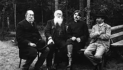 Novaković with Maxim Gorky, Vladimir Stasov and Ilya Repin, 1909.