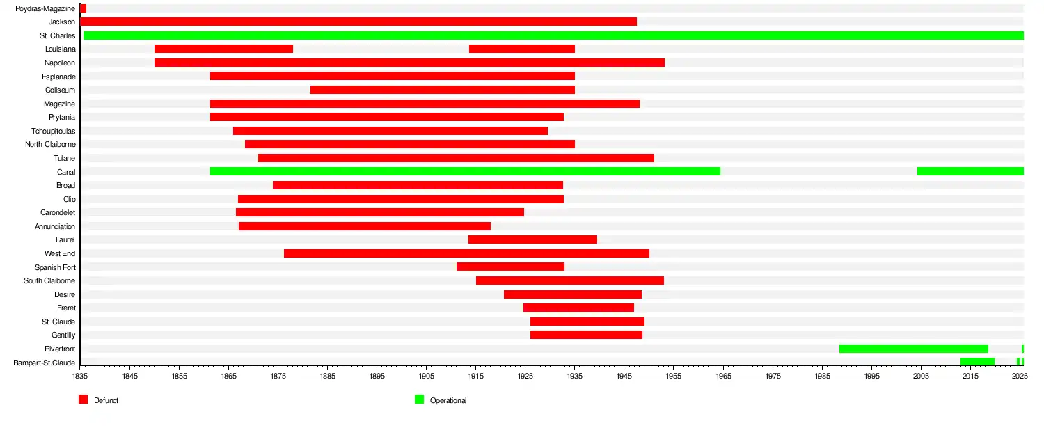 | Operator(s) | New Orleans Regional Transit Authority (RTA) | |||||||||||||||||||||||||||||||||||||||||||||||||||||||||||||||||||||||||||||||||||||||||||||||||||||||||||||||||||||||||||||||||||||||||||||||||||||||||||||||||||||||||||||||||||||||||||||||||||||||||||||||||||||||||||||||||||||||||||||||||||||||||||||||||||||||||||||||||||||||||||||||||||||||||||||||||||||||||||||||||||||||||||||||||||||||||||||||||||||||||||||||||||||||||||||||||||||||||||||||||||||||||||||||||||||||||||||||||||||||||||||||||||||||||||||||||||||||||||||||||||||||||||||||||||||||||||||||||||||||||||||||||||||||||||||||||||||||||||||||||||||||||||||||||||