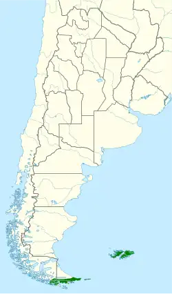The striated caracara is found on the outer Falkland Islands, Isla Grande de Tierra del Fuego, Isla de los Estados (Staten Island), Isla Navarino, Cape Horn, and other islands in the far south of Argentina and Chile. It was hunted to extirpation on East Falkland. It primarily inhabits rocky coasts with adjacent tussock grass but also ranges inland to mountain foothills up to about 500 m (1,600 ft) above sea level.[4][17] It is generally non-migratory but may move seasonally to higher elevations. It also may be only a winter visitor to some of the South American islands.[4][17]