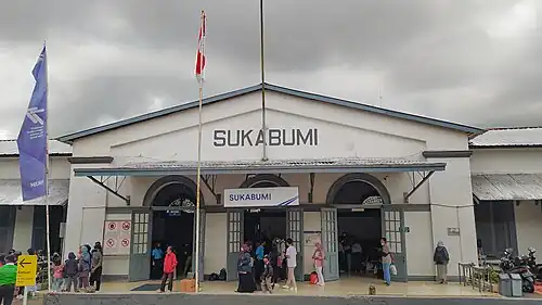 Sukabumi railway station (Sundanese: ᮞᮨᮒᮒ᮪ᮞᮤᮇᮔ᮪ ᮞᮥᮊᮘᮥᮙᮤ, romanized: Setatsion Sukabumi) (Indonesian: Stasiun Sukabumi) is a class II railway station located at Sukabumi, West Java, Indonesia. The station, which is located at an altitude of +584 m, is included in the Operation Area I Jakarta and only train station in Sukabumi.[2]