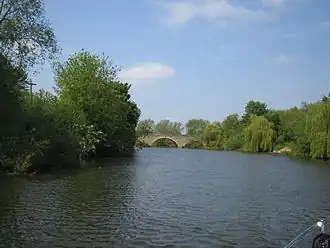 Sutton Bridge is a road bridge across the River Thames near the village of Sutton Courtenay, Oxfordshire, England. It is a stone structure built in 1807 with three arches over the main river and two smaller ones across the flood plain. An extension was built in 1809 across the Culham Cut, just below Culham Lock. It was originally a toll bridge and replaced an earlier multi-arch bridge over the original weir and a ferry at this site.[2] It is a Grade II listed building.[3]