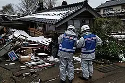 Since 2020, the city has been hit by an earthquake swarm.[9] A MJMA 5.4 earthquake in June 2022 injured seven people, damaged a temple and shattered windows.[10][11][12] In May 2023, a MJMA 6.5 earthquake hit the city.[13] One person died, 47 others were injured, 38 houses collapsed, 263 were partially destroyed and 1,825 others were damaged in Suzu, over one-third of the city's housing stock.[14][15] At the beginning of 2024, another earthquake, measuring MJMA 7.6, hit close to Suzu, causing 146 deaths in the city (including 49 indirectly) and destroying or severely damaging 5,916 of the city's 6,000 houses.[16]