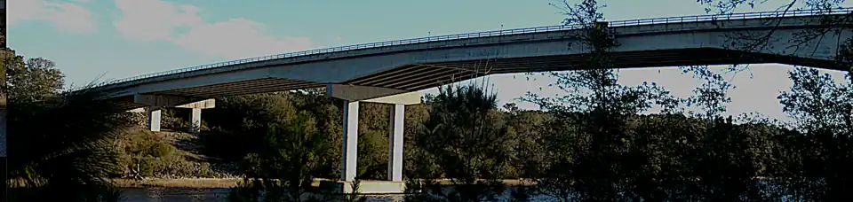 Swain’s Cut Bridge carries NC 906 across the Atlantic Intracoastal Waterway (ICW) connecting Oak Island, NC to the mainland. Built for $36 million under contract to the North Carolina Department of Transportation, the bridge opened for traffic in the fall of 2010. A high rise design similar to the Barbee Bridge which crosses the ICW at the east end of the island, the Swain's Cut Bridge is built over a narrow part of the channel and required only three main spans while the Barbee Bridge needed 37.