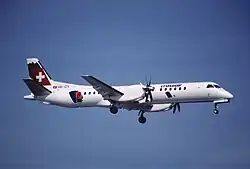 The aircraft involved was a Saab 2000, registered HB-IZY,[1] and named Doldenhorn, after a 3,643-metre-high (11,952 ft) mountain in Switzerland.[2] The aircraft's serial number was 047 and had first flown on 30 April 1997.[1] At the time of the accident, it had completed 12,303 hours of flight and made 12,069 landings.[3]