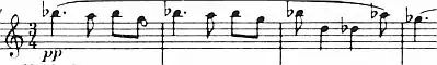 While Shostakovich's intent may have been to emphasise that life is truly beautiful, he did so by starkly underlining the opposite — that the end of life is ugly and irredeemably negative.[8] Toward this end, Shostakovich's music is sober in nature, and the composer was soon to extend these ideas in his last four string quartets as musical reflections on the themes of suffering and death.[9] As in his orchestration of Songs, his orchestration of the symphony is spare but extremely imaginative. His writing for the voice is in small intervals, with much tonal repetition and attention paid to natural declamation. This practice is taken directly from Mussorgsky.[10]