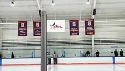 Syracuse Orange women's ice hockey is a college ice hockey program that has represented Syracuse University in National Collegiate Athletic Association (NCAA) Division I and Atlantic Hockey America (AHA). The Orange joined AHA at the conference's creation after the 2023–24 season, when College Hockey America (CHA), the Orange's home since the 2008–09 season, merged with the Atlantic Hockey Association.[1] Syracuse plays its home games at Tennity Ice Skating Pavilion in Syracuse, New York.