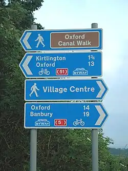 The crossing is used by a bridleway linking Tackley and Kirtlington, which is now also part of National Cycle Route 51.[3] The crossing is also the only passenger access to and from the "up" platform (i.e. for trains from Banbury or to Oxford, Reading and London).[3] As of 2009 Network Rail had 165 unprotected level crossings related to its stations, 26 of which were defined as "user-worked" or "footpath crossings".[1] However, Tackley crossing is the only one that combines station access with a public bridleway.[1]