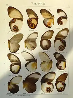 | Taenaris cyclops f. agapetha and f. eugenia in Adalbert Seitz's Die Großschmetterlinge der Erde | |
