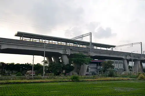 Tai'an (Chinese: 泰安車站; pinyin: Tài'ān Chēzhàn) is a railway station on the Taiwan Railways Administration Taichung line located in Houli District, Taichung, Taiwan.[1] The current elevated station is not the first Tai'an Station nor is located at its original site. Due to the re-routing of the West Coast line, the TRA closed the Tai'an Old Station on the Former Mountain line and keeps it as a tourist and historical facility while transferring the actual transportation service to the new station.