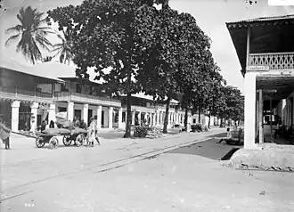 The first communities that called Tanga their home were the Digo people and the Swahili states of the 11th to 16th Centuries. However, the earliest documentation about Tanga comes from the Portuguese. During their disruption of the previous trading links Tanga settlement remained a small trading post for the colonists during their occupation of the East African coast for 200 years between 1500 and 1700 when they were ousted.[10] The Sultanate of Oman battled the Portuguese and gained control of the settlement by mid-1700 along with Mombasa, Pemba Island and Kilwa Kisiwani.[11] The town continued to act as a trading port for ivory and slaves under the sultan's rule.[12] Tanga continued to be a prosperous trading hub for slaves with the Arab world until 1873 when the European powers invaded and occupied thus abolishing the slave trade that was no longer serving the colonial powers.[11]