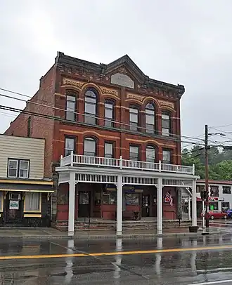 The Tarbell Building is a historic commercial building located in the Village of Marathon in Cortland County, New York. It is a three-story brick structure constructed in 1885 in the Queen Anne style. It has retail storefronts on the first floor and apartments and storage on the second and third. A rock-faced foundation pierced with basement windows is exposed on the south side.[2] The Tarbell Building was listed on the National Register of Historic Places in 2000.[1]