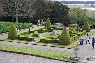 In 1847, the terraces to the south of the house were laid out as an Italian Garden by Edward Milner to a design by Joseph Paxton.[7] Later in the century, in 1883, Wilbraham Egerton added the stone balustrade.[7] The statue of Neptune, which came from Venice, was added in 1920. Over the years changes have been made to this garden, and it was restored to its original design in 1986.[8] In 1859, the Fernery had been built to a design by George Stokes, Paxton's assistant and son-in-law, to the west of the Conservatory to house tree ferns from New Zealand.[9] The Fernery was seen in the TV miniseries Brideshead Revisited.[10]