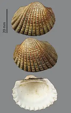 | Shell of Tegillarca granosa (specimen at MNHN, Paris) | |