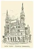 In 1868, the Congregation Emanu-El of New York erected a new synagogue building for the first time, a Moorish Revival structure designed by Leopold Eidlitz, assisted by Henry Fernbach, at 43rd Street and 5th Avenue after raising about $650,000. It was demolished in 1927, and replaced by a 1930s synagogue, also called Temple Emanu-El.[1][2][3]