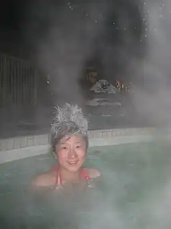 In 1910 drillers, who were looking for oil, discovered the hot springs that now service the hotel. The springs waters originate from an ancient sea bed, called the Western Interior Seaway,[2][3][4] 1,350 metres (4,430 ft) below the surface. The water travels under its own pressure through pipes to the spa, which is located about 400 metres (1,300 ft) away.[5]