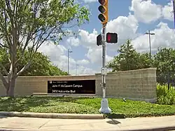Melinda Webb School, a private school for deaf infants to 7 years old, is located in the TMC;[47] it is operated by the Center for Hearing and Speech and was previously at 3636 W. Dallas.[48] The school serves as a day school for children not yet mainstreamed into regular classrooms and a speech and therapy center for those that are. Previously known as the Houston School for Deaf Children, it was given its current name, after a deaf girl, in 1997.[49] The girl died of leukemia circa 1958; a former student of the school, she had been the first area deaf child to be mainstreamed into a public school, as she began attending one in Texas City in 1954. Her father, Frank Webb, donated $1 million to what became the Melinda Webb School in 2002.[48] That year its enrollment was 35-40.[49] In 2020 it began admitting preschool students without hearing difficulties to provide a more mainstream environment.[47]